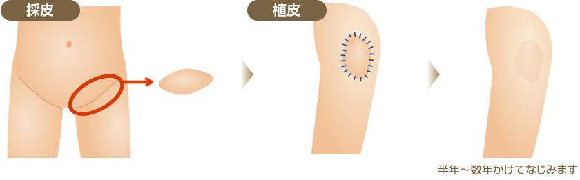 もしくは皮膚の別のところから持ってくる植皮という方法もあります。